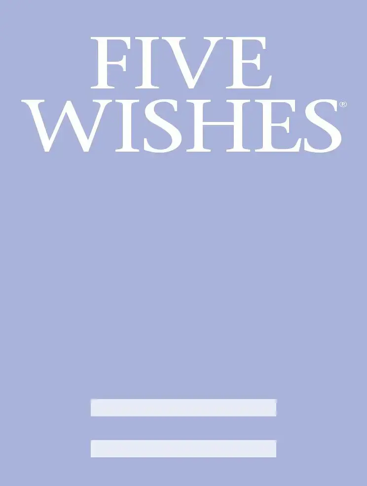 Five Wishes is the first living will (also called an advance directive) that talks about your personal, emotional, and spiritual needs as well as your medical wishes. It lets you choose the person you want to make health care decisions for you if you are not able to make them for yourself. Five Wishes lets you say exactly how you wish to be treated if you get seriously ill. It was written with the help of the nation’s leading experts in end-of-life care. It’s also easy to use. All you have to do is check a box, circle a direction, or write a few sentences.