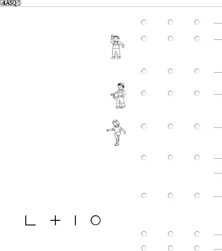2. While standing, does your child throw a ball OVERHAND in the direction of a person standing at least 6 feet away? To throw overhand, your child must raise his arm to shoulder height and throw the ball forward. (Dropping the ball or throwing the ball underhand should be scored as “not yet.”)