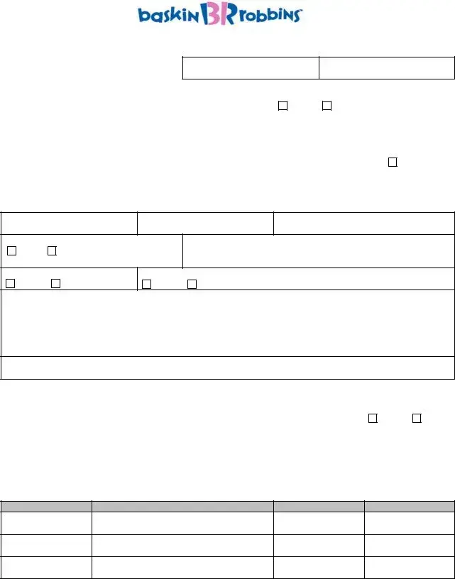 The Baskin Robbins Job Form is a crucial document for individuals seeking employment at this well-known ice cream chain. It collects essential information such as personal details, employment history, and educational background, helping to streamline the hiring process. If you're ready to take the next step in your career, consider filling out the form by clicking the button below.