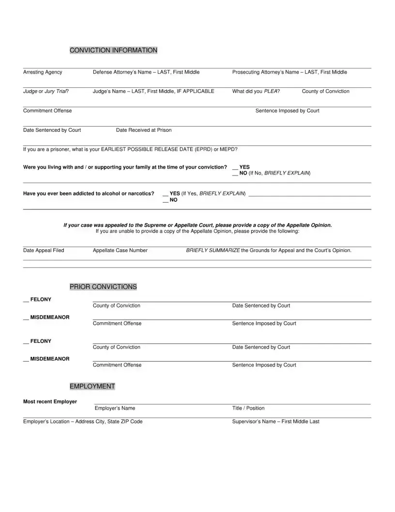 The application for expungement of criminal records shares common elements with the clemency form. Both processes require individuals to provide information about their convictions and demonstrate rehabilitation. The goal is to remove barriers that hinder individuals from fully participating in society, such as securing employment or housing.