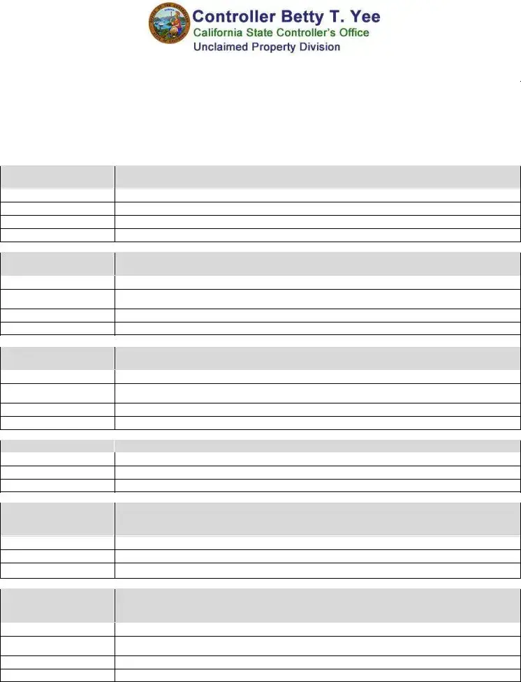 The California Heirship form is a document used to identify the heirs of a deceased property owner. It requires detailed information about the deceased and their known relatives, including spouses, children, and siblings. Completing this form accurately is essential for claiming any property or funds owed to the heirs.