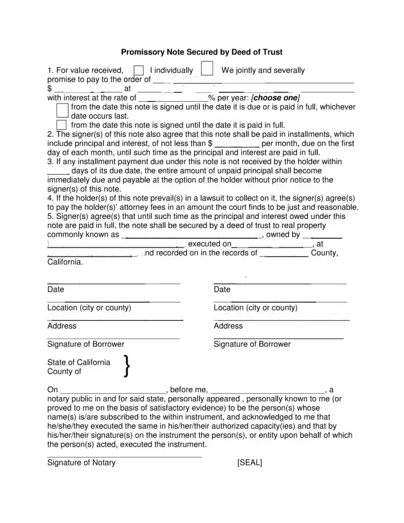 Completing the California Note Secured form is an important step in formalizing a loan agreement. This process requires careful attention to detail to ensure that all necessary information is accurately provided. After filling out the form, it will need to be signed and potentially notarized, depending on the requirements.