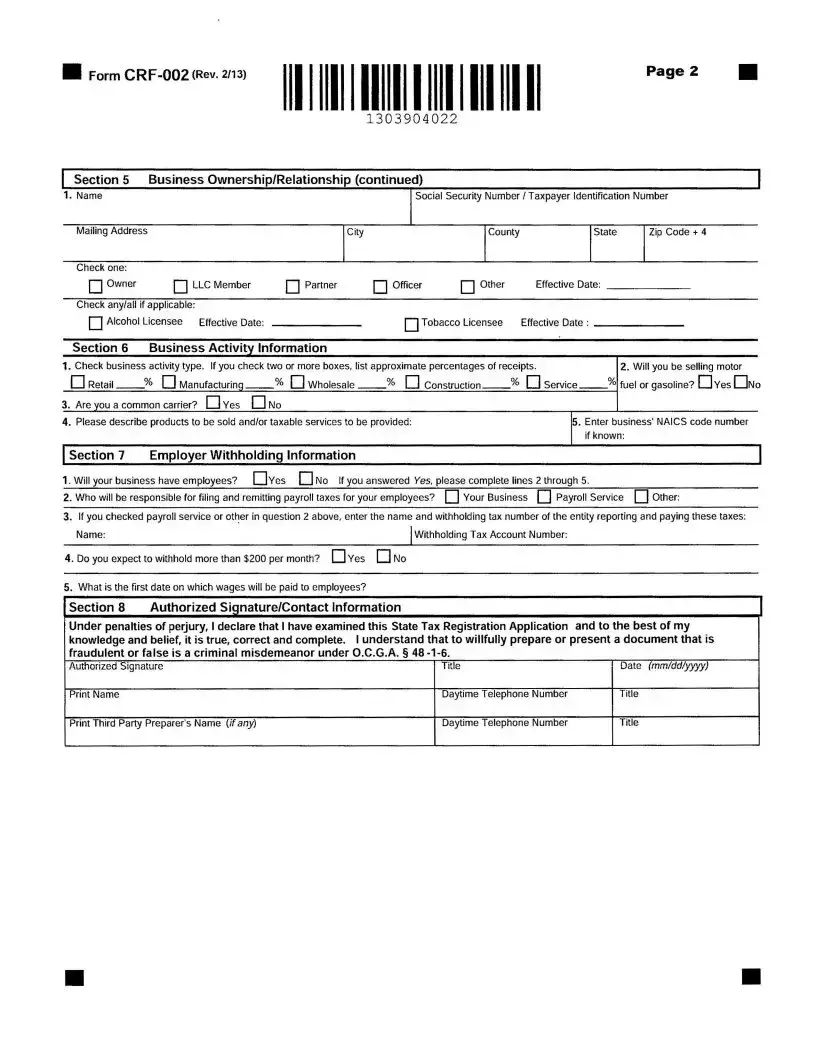 The Georgia State Tax Registration Application Form CRF-002 is designed for businesses to register with the Georgia Department of Revenue. This form is essential for various reasons, including new business registrations, changes in business structure, or adding new locations. By completing this form, businesses can ensure they are compliant with state tax laws and can obtain the necessary tax identification numbers for their operations.