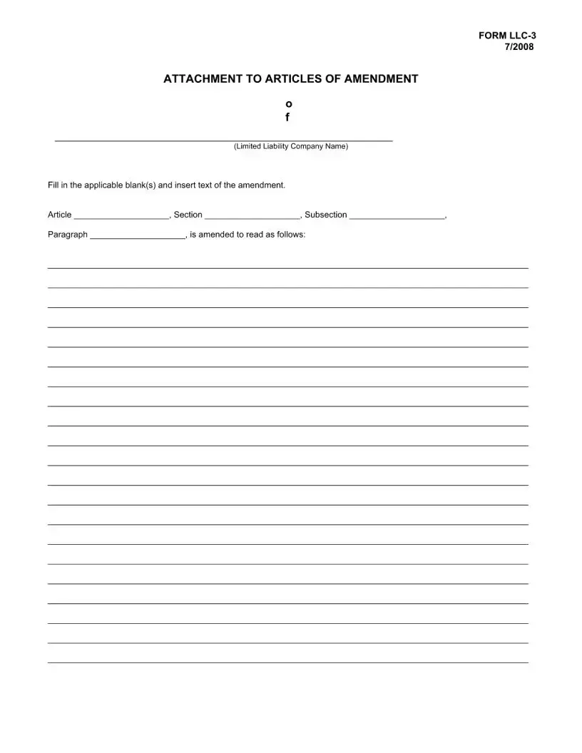 Amendments attached to the Hawaii LLC-3 form must be clearly identified by the numerical or other designation used in the original Articles of Organization. They should be typewritten or printed in black ink on standard 8-1/2 x 11 white bond paper, and printed only on one side. It is important not to re-execute the attachment; simply include it as part of the filing.