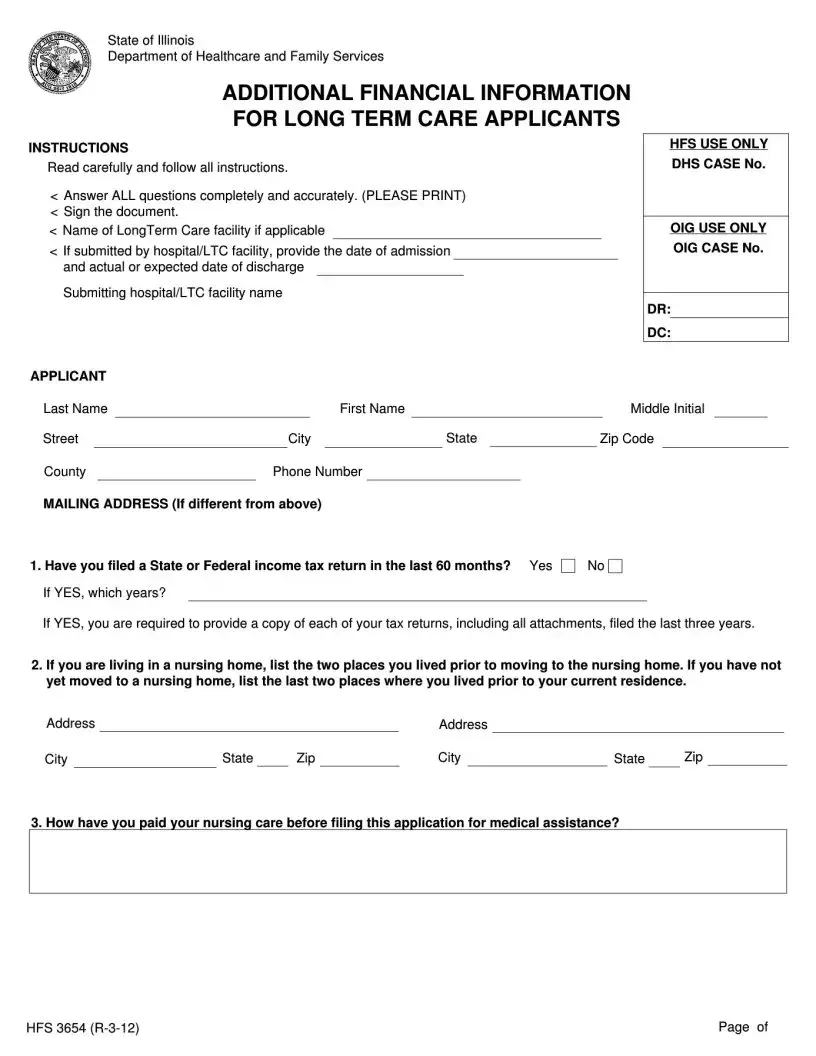 Completing the HFS 3654 form is an essential step for individuals seeking assistance with long-term care in Illinois. This form gathers important financial information and helps determine eligibility for medical assistance. After filling out the form, it should be submitted to the appropriate agency along with any required documentation.