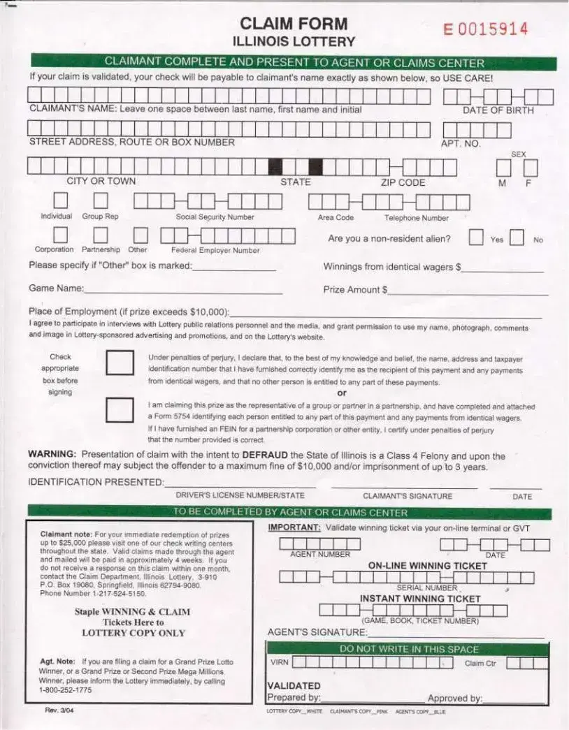 While claiming in person is an option, you can also mail your completed claim form to the Illinois Lottery's Claim Department.