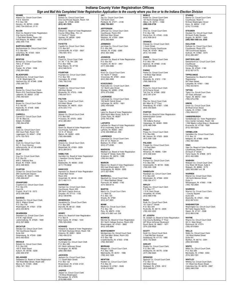 If you have questions about the form or the registration process, you can call your county voter registration office or the Indiana Election Division at 317-232-3939. There is also a toll-free number for Indiana residents: 800-622-4941.