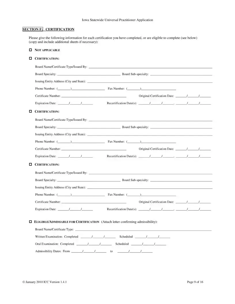The American Medical Association (AMA) Physician Profile is also akin to the Iowa Universal Application. The AMA profile gathers essential information about a physician's education, training, and practice. Similar to the Iowa form, it includes sections for board certifications and practice specialties. Both documents serve to verify a physician's qualifications and ensure they meet the standards set by medical boards and professional organizations.