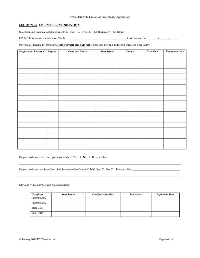 Another similar document is the Federation of State Medical Boards (FSMB) Uniform Application for Physician State Licensure. Like the Iowa Universal Application, the FSMB application collects demographic information, education details, and practice history. It serves as a standardized application for physicians seeking licensure in multiple states, streamlining the process. Both applications emphasize the importance of accuracy and completeness in the information provided, ensuring that licensing boards can make informed decisions.