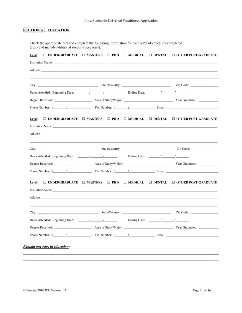 The Iowa Universal Application form is a comprehensive document essential for practitioners seeking credentialing in the state. To ensure a smooth application process, there are several other forms and documents that applicants often need to submit alongside the Universal Application. Each of these documents serves a specific purpose in providing additional information or verifying credentials.