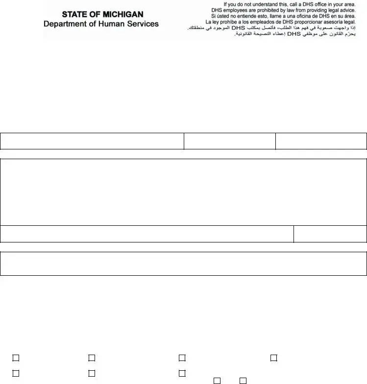 Department of Human Services (DHS) will not discriminate against any individual or group because of race, religion, age, national origin, color, height, weight, marital status, sex, sexual orientation, gender identity or expression, political beliefs or disability. If you need help with reading, writing, hearing, etc., under the Americans with Disabilities Act, you are invited to make your needs known to a DHS office in your area. AUTHORITY: Act 280 of 1939, as amended, and Title IV and XIX of the Social Security Act.