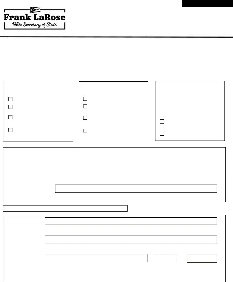 Lastly, the Form 144-LAD is used to change the address of an agent for limited liability companies, mirroring the address change option in the Ohio 521 form. Both documents serve the same purpose of maintaining accurate agent information, which is crucial for ensuring that legal notifications are received promptly. This consistency across forms highlights the standardized approach Ohio takes in managing statutory agent responsibilities for various business structures.