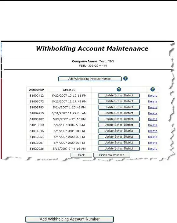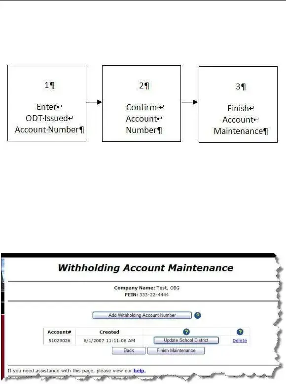 on the Ohio Withholding Progress Page and click . The system displays the Withholding Account Maintenance page.