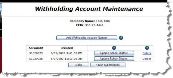 Every Company/FEIN must have at least one account associated with it to file withholding reports.