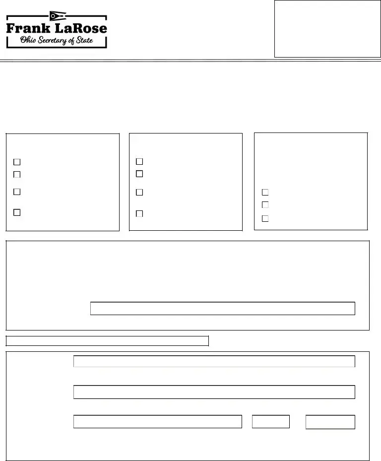 Another document similar to the Ohio Secretary of State form is the Operating Agreement for Limited Liability Companies (LLCs). While the Secretary of State form is primarily for official filings, the Operating Agreement outlines the internal management structure and operating procedures of the LLC. Both documents require detailed information about the business structure and the roles of individuals involved. They serve different purposes but are both crucial for the legal operation of the business, ensuring that all parties understand their rights and responsibilities.