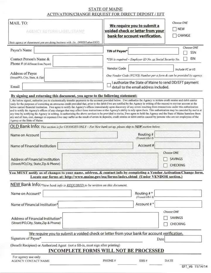 •Direct Deposit Form: The policyholder must be on the checking or savings account. If you have a savings account that you want the check to go into, attach a letter from the bank with the account number, routing number, and name of account holder.