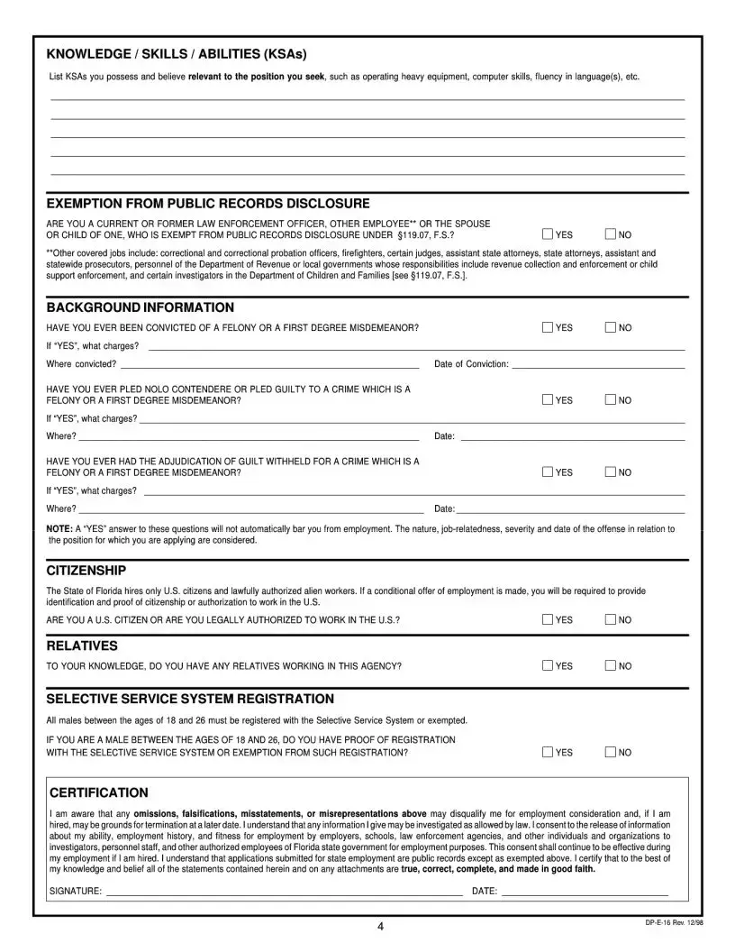 The State of Florida Employment Application form is a crucial document for individuals seeking employment within state agencies. This form not only collects essential personal and professional information but also ensures that applicants meet the necessary requirements for various positions. Understanding how to accurately fill out this application can significantly enhance your chances of landing a job in Florida's state workforce.