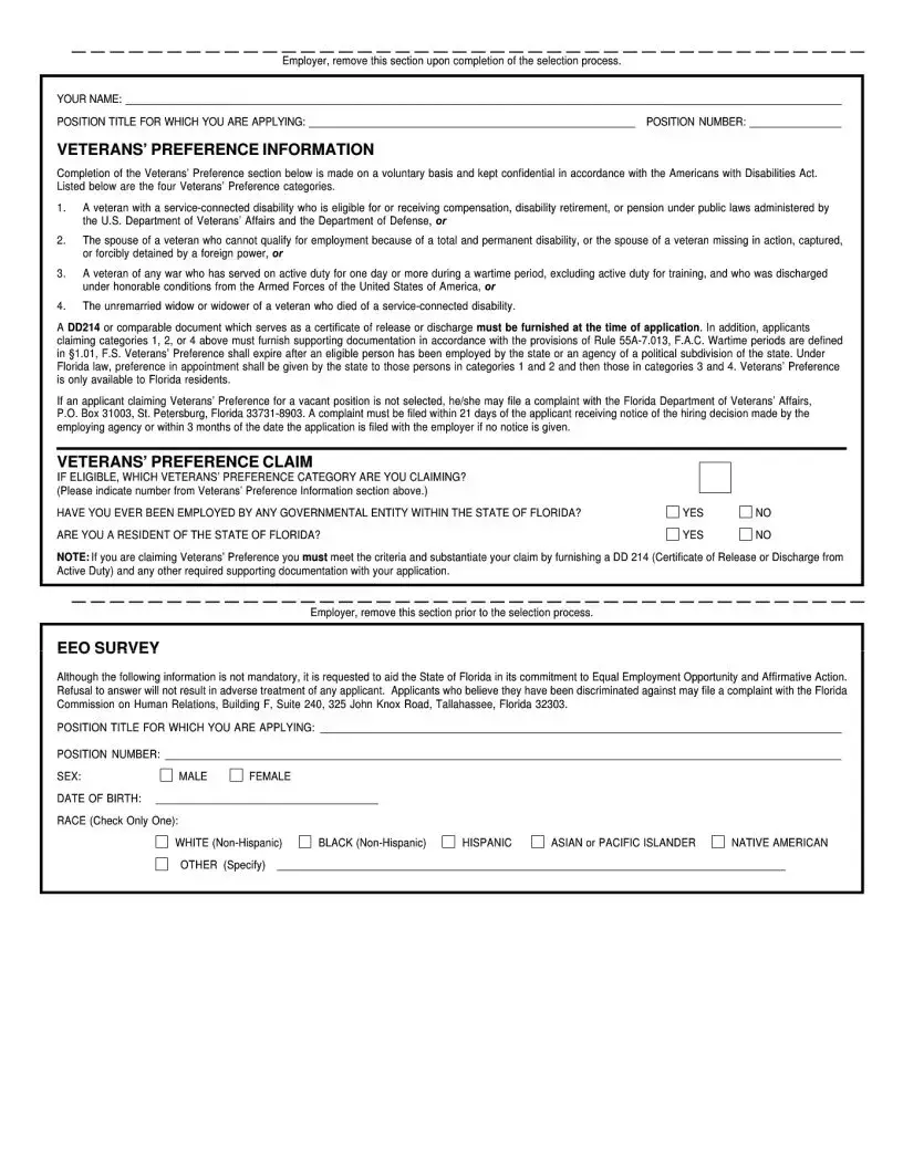 When filling out the State of Florida Employment Application form, keep these key points in mind: