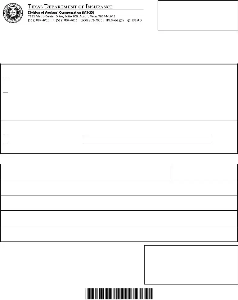 Texas Department of Insurance Division of Workers’ Compensation 7551 Metro Center Drive, Suite 100 • MS-35 Austin, TX 78744-1645