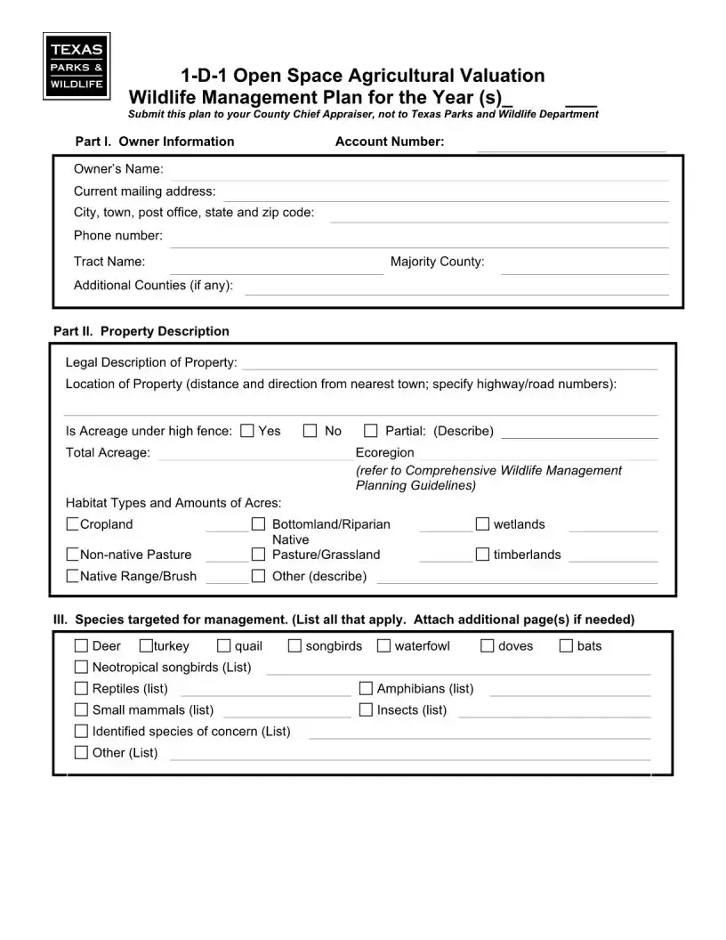 Understanding these forms and their purposes is crucial for effective communication with the Texas Parks and Wildlife Department. Properly completing and submitting the necessary documentation can significantly impact wildlife management efforts and agricultural valuation processes.
