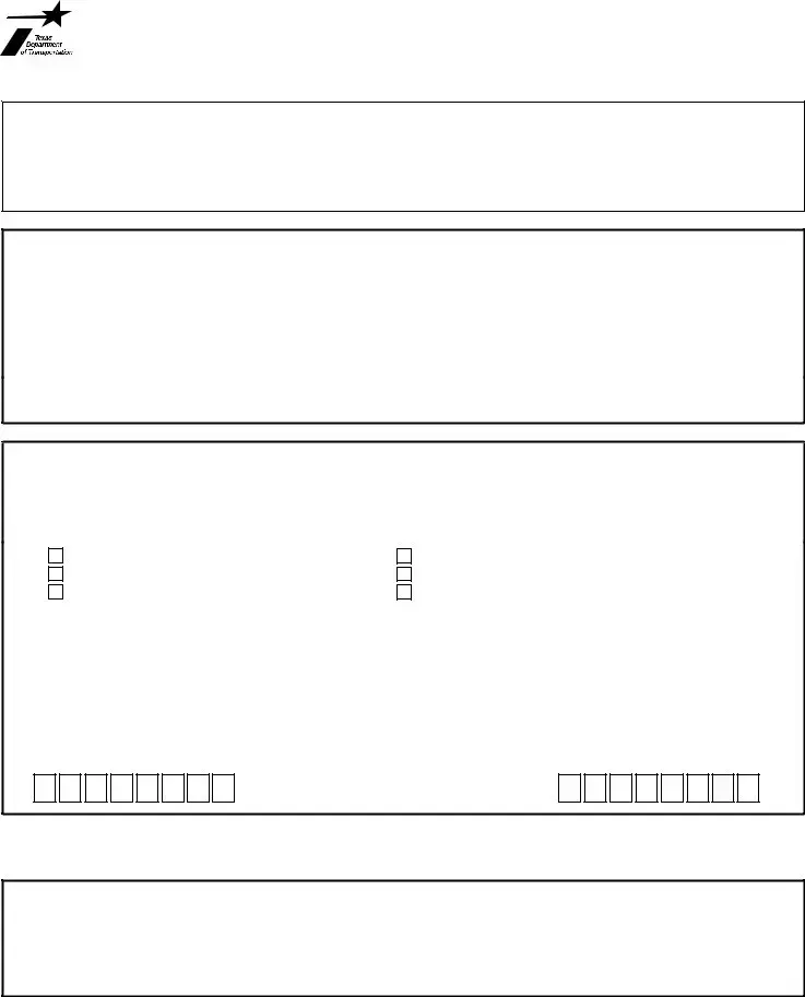 THE MAILING OF CASH IS DISCOURAGED. Please remit payment in the form of CASHIER’S CHECK, MONEY ORDER, or CHECK payable to the Texas Department of Transportation.