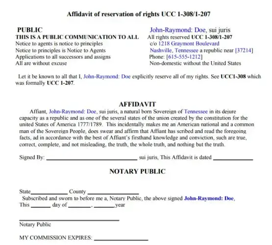 Affidavit of reservation of rights UCC 1-308/1-207